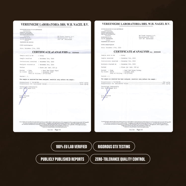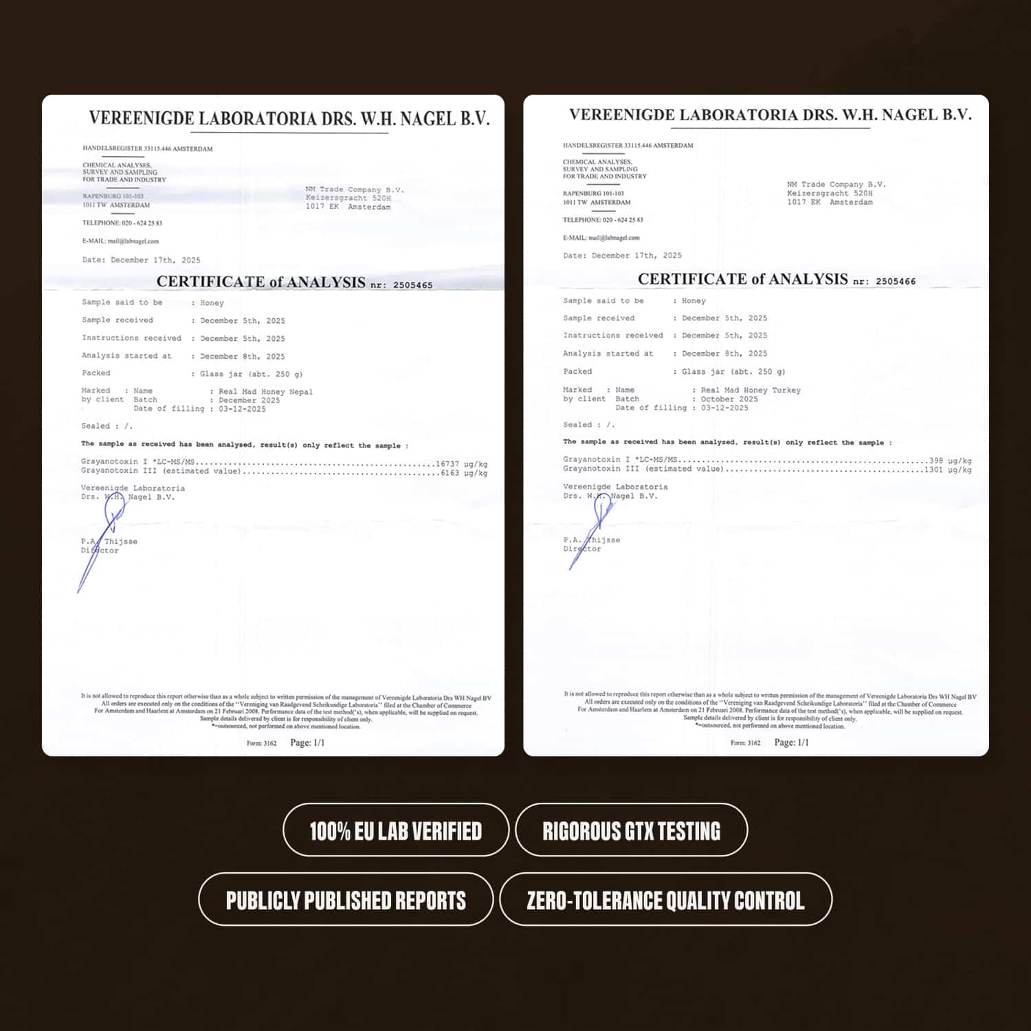 We strive for quality and our 3rd-party verification is a testament to this. This means you’re receiving top-quality Mad Honey you can trust.