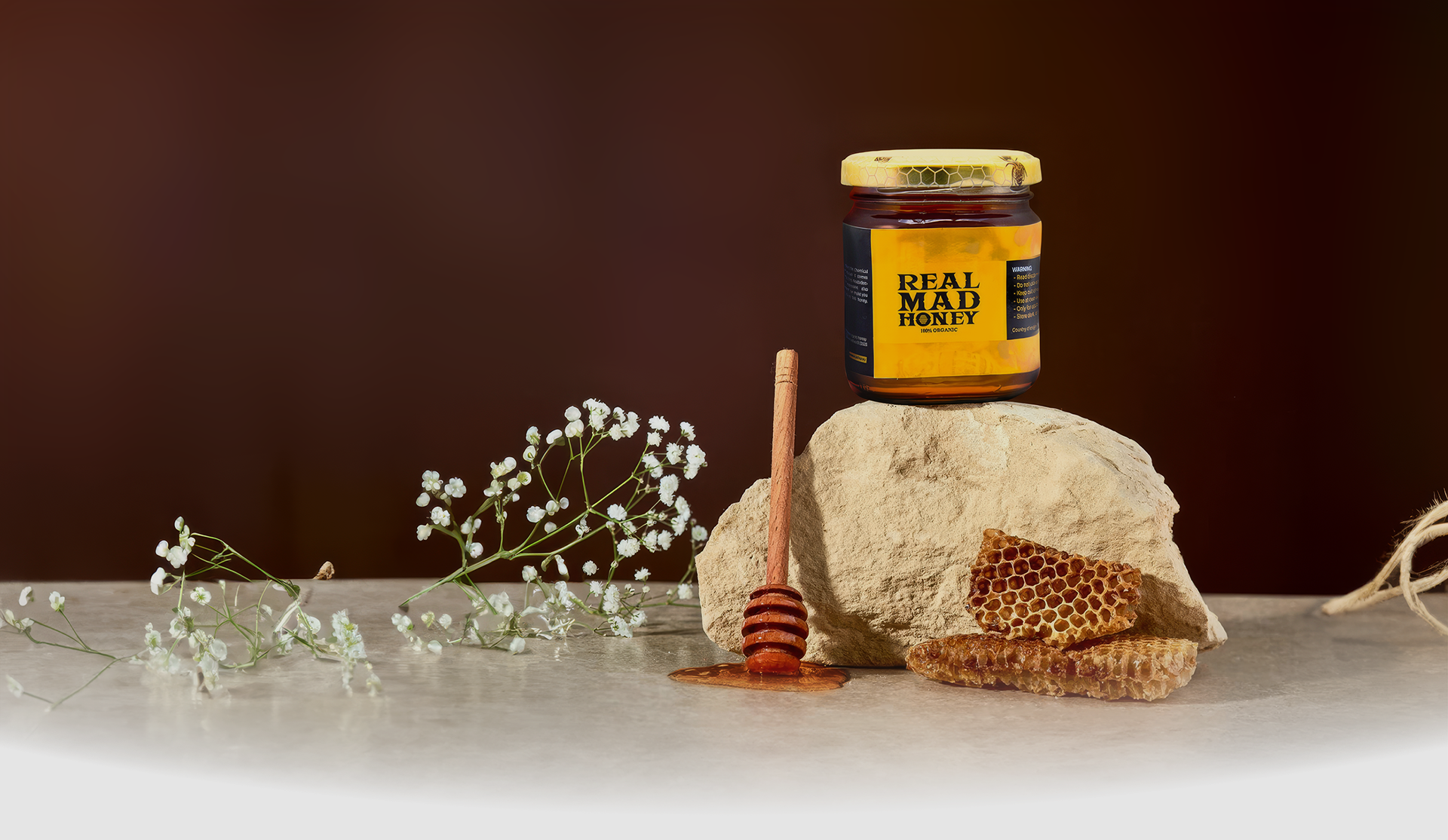 Real Mad Honey madu 100% alami dan unik. Setelah diekstraksi oleh para peternak lebah ahli kami, madu ini tidak ditambahkan bahan apa pun, artinya tetap tidak disaring dan siap untuk dinikmati.