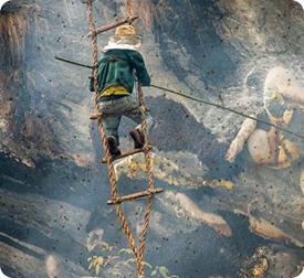 The honey hunters of Tanjhey hail predominantly from the Tamang and Gurung ethnic communities. These fearless adventurers scale cliffs as high as 3,000 meters to harvest honey during the season, a practice as daring as it is ancient. Beyond honey hunting, the villagers sustain themselves through animal husbandry, cardamom farming, and agriculture, keeping their ties to the land strong and enduring.